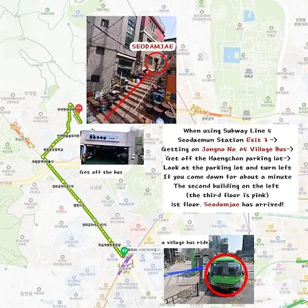 Ubytování je umístěno ve čtvrti Jongno-Gu, 650 metrů od stanice metra Dongnimmun. Palác Deoksugung je 2,1 km daleko od Seodamjae. Autobusová zastávka Geukdong Apt je 10 minut chůze od ubytování.
